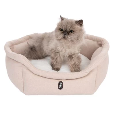La cama de lujo para mascotas TIAKI Frankie brinda un máximo confort gracias a su borde alto y su relleno denso, permitiendo que tu gato se acurruque cómodamente. La entrada baja facilita el acceso, incluso para gatos mayores o con limitaciones físicas.