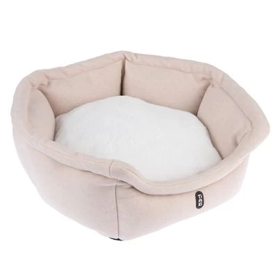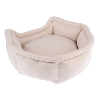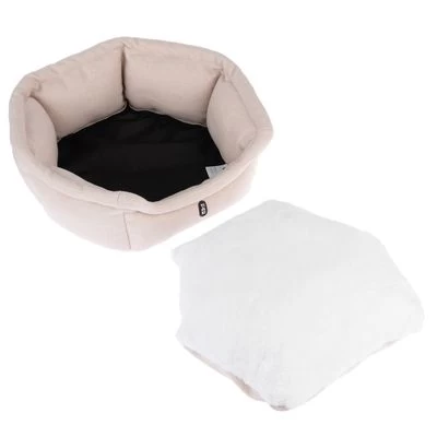 Cama para gatos con cojín reversible, acolchado grueso, borde elevado para apoyarse, incl. revestimiento lavable, apta para gatos mayores y enfermos. Color: beige / blanco