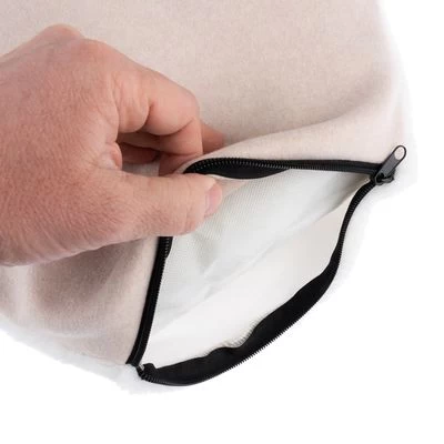 - Cojín reversible desenfundable, con opciones de tela de tapicería y peluche.