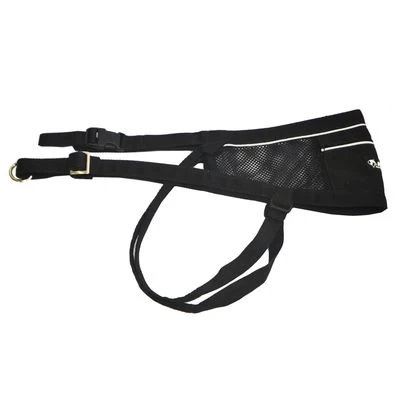 Cinturón de canicross ligero y transpirable. Con perneras, bolsillo y ajuste sin niveles. Enganche para la línea de tiro de canicross en la parte delantera.