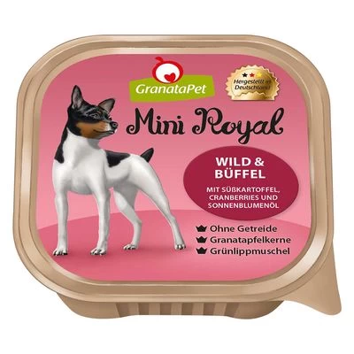 Las tarrinas GranataPet Mini Royal ofrecen a tu perro de raza pequeña un alimento saludable, adaptado y formulado exclusivamente a base de ingredientes beneficiosos. No contiene cereales ni gluten y, gracias a su elevada cantidad de carne, suministra a tu perro una gran dosis de proteínas animales y promueve su digestibilidad.