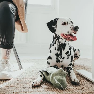 - Juguete para perros medianos y grandes con forma de cocodrilo