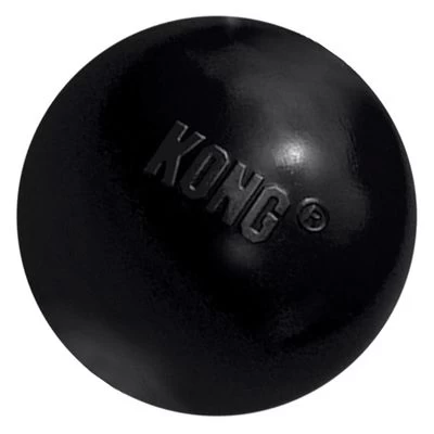 Pelota para perros de la casa KONG de caucho natural resistente. Ideal para perros de cualquier tamaño con mandíbula robusta. Color: negro.