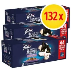 Económico megapack Ahorro de Felix Fantastic compuesto por 132 sobres de cuatro sabores distintos de comida jugosa y tierna en gelatina. ¡Top Ventas!