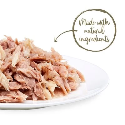 Deliciosa comida húmeda opara gatos adultos, elaborada con ingredientes naturales de excelente calidad: pescado procedente de la pesca sostenible y carne de pollo de corral de crianza en libertad a los que no se les suministran ni hormonas ni antibióticos. La carne de pollo, además, proporciona proteínas con escasa materia grasa.