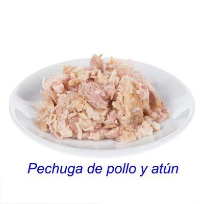 - 24x 70 g Pechuga de pollo y atún: mezcla de sabrosa pechuga de pollo y pedacitos de atún claro
